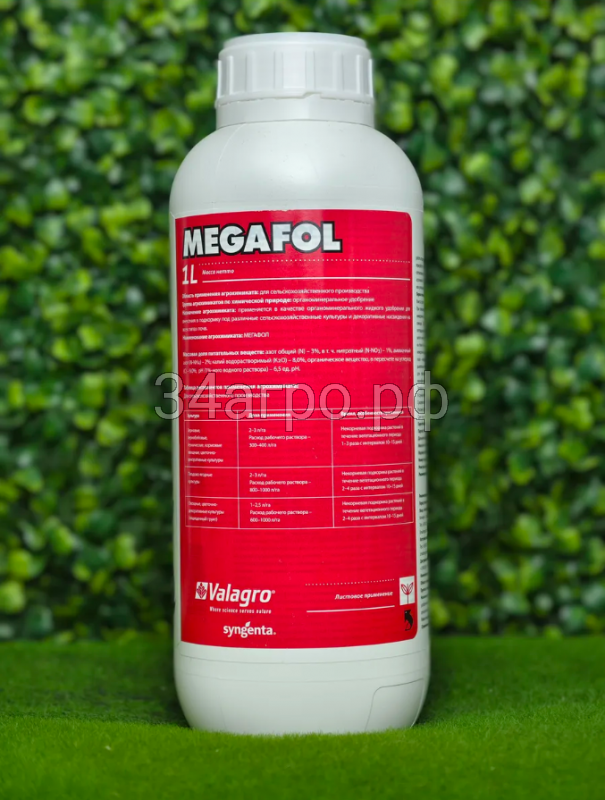 Valagro Megafol — специальный антистрессовый препарат, произведенный из растительных аминокислот, в особом сочетании с калием, бетаином, полисахаридами и прогормональными соединениями. Основные компоненты получены путем энзимного гидролиза и эксклюзивной технологии “Wave” из высоко-протеиновых растительных субстратов. Применение стимулятора мегафол повышает урожайность и качество продукции, и стабилизирует эти показатели в неблагоприятных условиях. Восстанавливает рост и развитие растений после стрессовых ситуаций: заморозки, низкая или высокая температура, тепловой ожог.